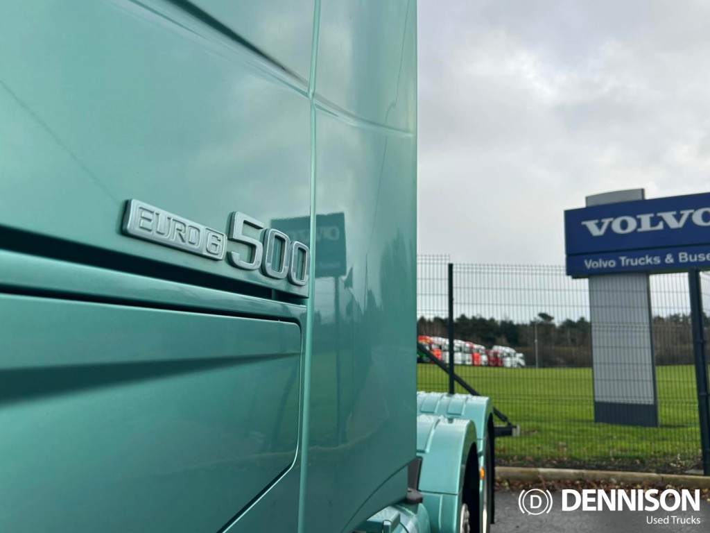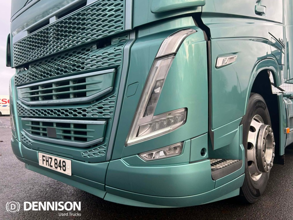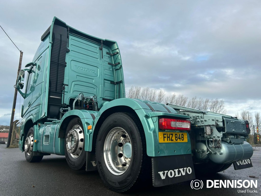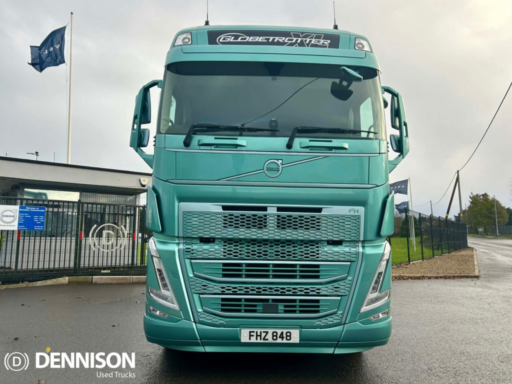 2022 FH Globetrotter XL, 500 HP, Version 5, Euro 6, 6x2, I-Shift gearbox with seat lever controls, 4.1m wheelbase, 550/240 derv tanks, rear-of-cab AdBlue tank, corner LED spot lamps, LED headlamps, Alcoa Durabrite alloy wheels with chrome wheel trims, 315/70 tyres, window deflectors, corner dirt deflectors, under-bumper spoiler, external locker, leather seats, swivel passenger seat, heated driver seat, fridge, microwave, TV prep, TomTom Trucker sat-nav, DAB media package, light green metallic paint with colour-coded mudguards, 24 months warranty available., 6, Globetrotter XL, I-Shift, 4.1m